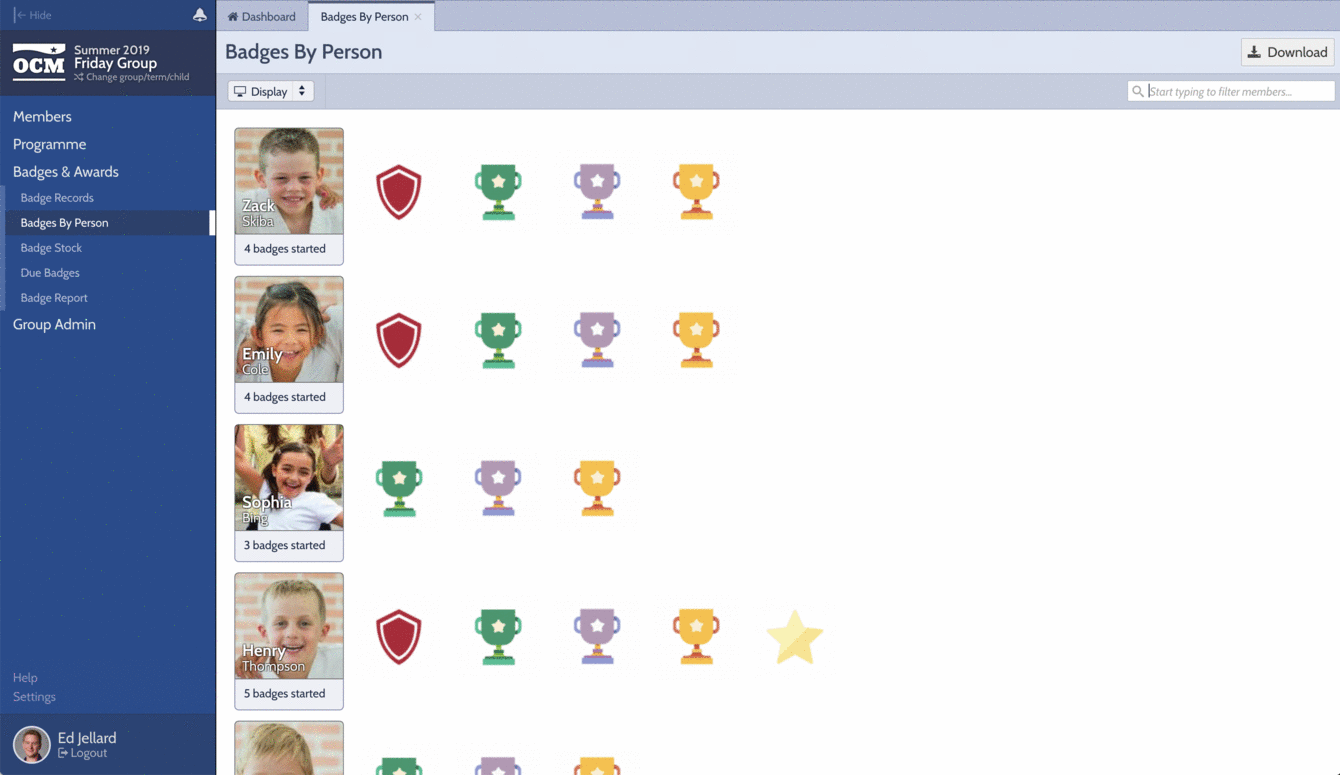 Badge and award records can be automatically updated based on your programme and attendance register.